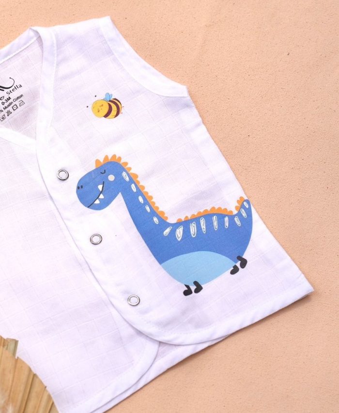 Make your babyโs day brighter with our blue dinosaur muslin jabla for baby. Crafted from 100% pure muslin cotton, this sleeveless vest keeps your little one cool and cozy in every season. The soft, breathable weave ensures comfort, while the lightweight texture allows air to flow freely.