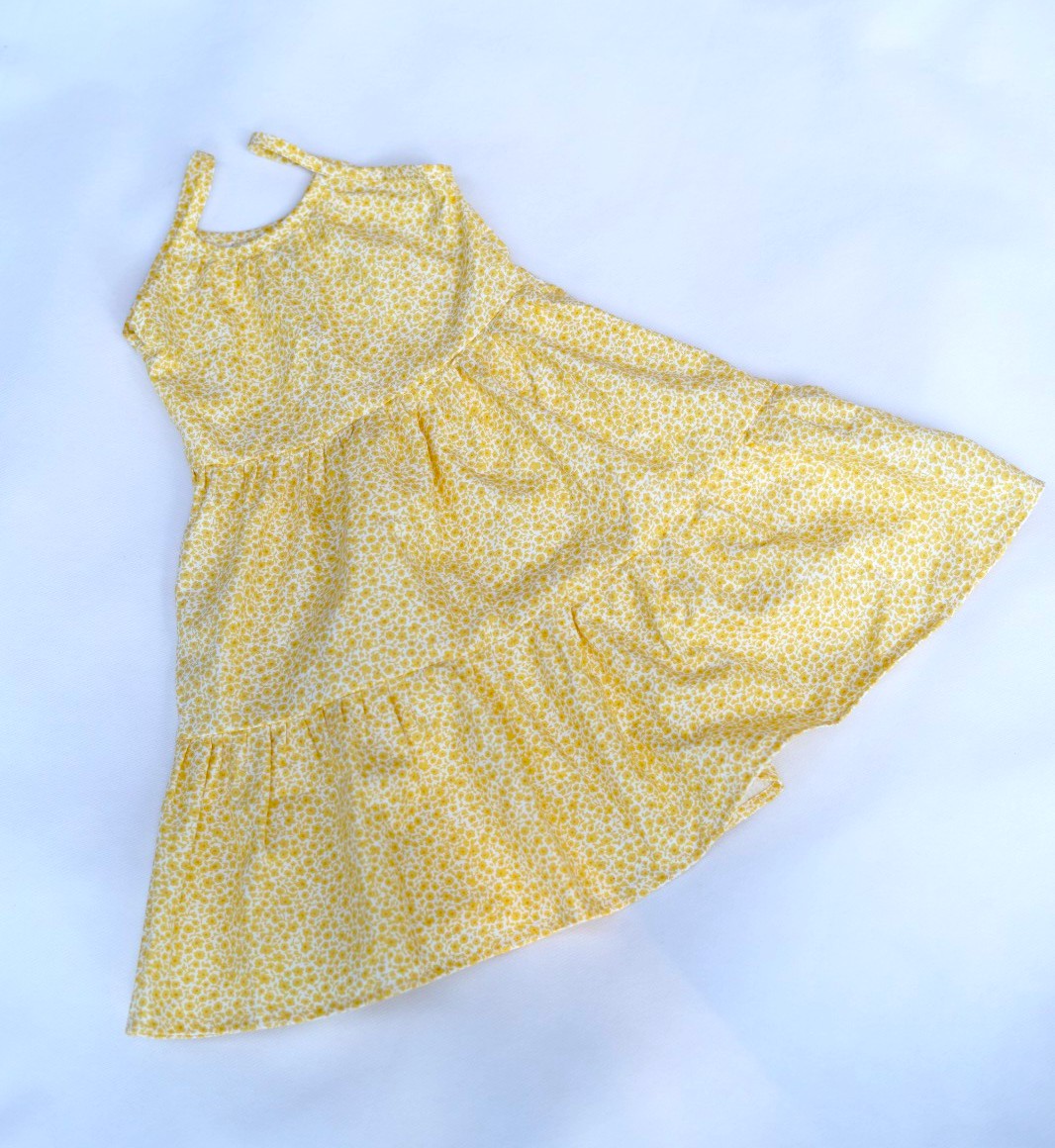 Designed with subtle all-over prints, this yellow baby summer frock offers a charming and cheerful appearance. The soft yellow shade combined with delicate patterns makes it ideal for casual wear, family outings, and special daytime occasions.